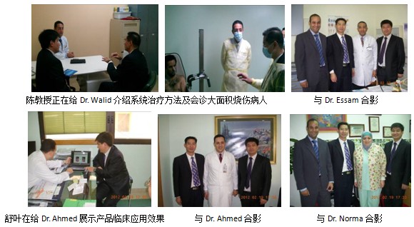 2月19日早上8:30, 美宝产品推广团队对吉达地区三家大型医院的四名重点医生进行了专访。Dr. Walid是Dr. Soliman Fakeeh Hospital医院整形科专家,使用再生医疗技术长达十年时间,目前正在结合再生疗法进行白癜风治疗的研究。在同该医生讲解完大面积烧伤创面处理原则后,陈教授在病房会诊了一例80%面积的烧伤患者,并给出创面处理意见。随后赶往Bugshan Hospital腹腔镜外科主任医师Dr. Essam。该医生从1998年开始使用美宝在各类创面上,尤其是肛瘘患者。在介绍完疤痕平后,表示已经开始临床使用,很高兴能深入了解该产品的特点。最后,美宝团队来到了Dr. Erfan&Bagedo General Hospital医院的皮肤科及妇产科。皮肤科医生Dr. Ahmed从1992年就开始使用美宝技术和产品。在详细介绍了相关疤痕平产品信息后,该医生表示马上会进行临床使用,并对美宝团队的到访表示诚挚的谢意。妇产科主任Dr. Norma是当地知名的妇产科医师,使用美宝技术长达15年。对剖腹产术后增生性疤痕治疗的兴趣很大,同时表示,很多病人为此非常苦恼。在介绍完疤痕平临床效果后,该医生惊呼神奇,并表示会总结使用后心得,撰写疤痕平相关论文。