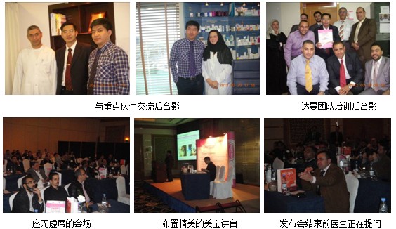 2、 2月20日,美宝团队来到达曼市。上午,与达曼市各级医院的重点医生会面,交流美宝疤痕平临床使用效果。下午,来到达曼办公室,给当地销售人员进行产品培训。晚上,在Sheraton Hotel举行美宝疤痕平产品发布会。会议请来了全市多家医院和诊所的烧伤整形、普外、骨科、妇产科、全科和急诊科等专业的150余名医护人员参加。产品发布会的内容很受欢迎,讨论阶段非常热烈。通过这次发布会使当地医务人员了解了再生医学技术中另一个明星产品---美宝疤痕平,解答了美宝烧伤膏和疤痕平在伤口愈合中发挥的不同功效。