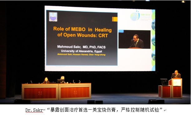 首先演讲的是来自埃及知名烧伤治疗专家、亚历山大大学医学院教授Prof.Mahmoud Sakr. Prof.Sakr以“Role of moist exposed burn ointment (MEBO) in healing of chronic diabetic foot ulcers: A controlled randomized trial”为题详细介绍了自己在埃及近15年的烧伤再生医学在糖尿病足治疗应用经验。不仅有详实的病例,更有严谨的对比实验和具体的数据分析,详尽阐明美宝在“糖尿病足”这一世界难题的治疗中所取得的卓越疗效。并指出美宝是暴露创面治疗的首选!他的精彩演讲赢得了阵阵掌声,大家踊跃就美宝的治疗机理以及一些临床问题进行提问,当Prof.Sakr离开讲台时,仍然有提问专家挽留他继续答疑,无奈之下他只能笑着说:“看来我没那么容易离开了,我们可以随时交流!”