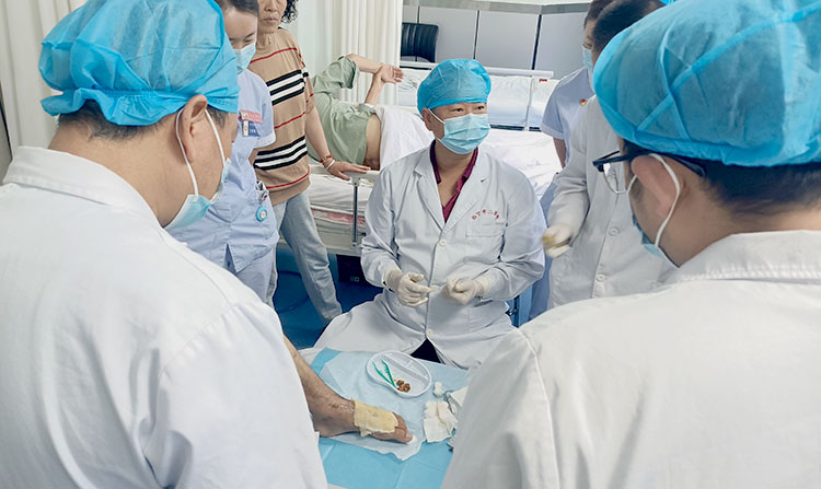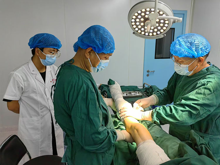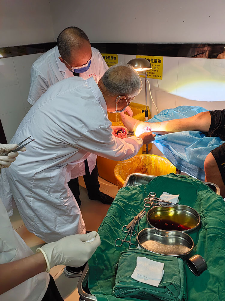 2024年8月12日,应高平民生烧伤专科医院邀请,《中国烧伤创疡杂志》常务编委、烧伤创疡再生医疗技术临床专家赵瑞庆,在该院会诊了二例患者,一例因摩托车排气管烫伤左下肢三度烧伤,另外一例为左下肢踝关节内侧慢性创面13年未愈,针对关节功能部位的特殊性采取措施,术中顺利,出血不多,病人安返病房。赵教授就有关术后管理注意事项做了详细布置。得到医护人员及家属的一致好评。