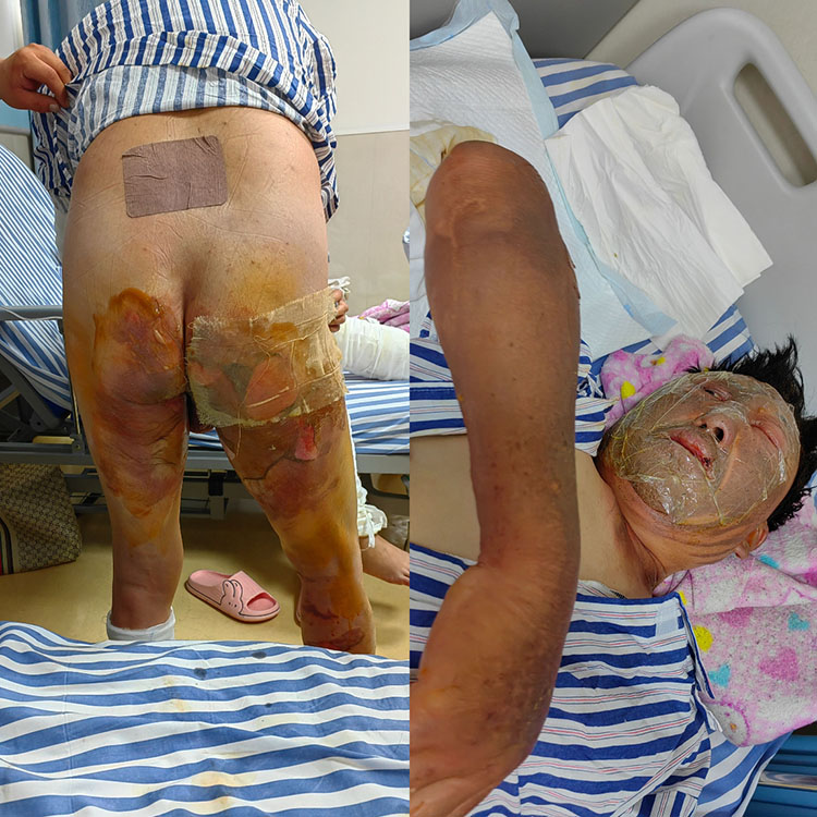 2024年8月8-9日,《中国烧伤创疡杂志》编委、烧伤创疡再生医疗技术临床专家张强 ,应邀来到荆州市第三人民医院烧伤整形科会诊两例液化气爆炸烧伤患者,张教授亲自清创换药,指导医生规范应用再生医疗技术进行创面换药治疗,得到科室周主任和医生的高度认可,患者家属对张教授顶着炎热远道而来进行会诊治疗表示感谢!