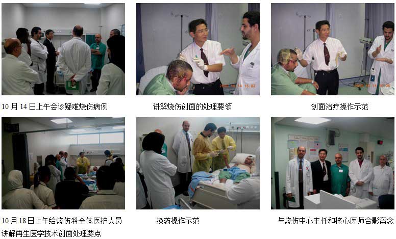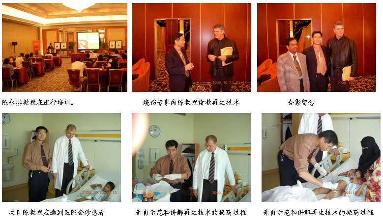 三、2009年10月14日下午和18日上午,陈永翀先后2次应邀到迪拜最大的医院Dubai Rashid Hospital的烧伤创伤中心(该中心是阿联酋最大的创伤救治中心),会诊指导烧伤患者的治疗和示范烧伤再生医学技术的规范创面处理技术,通过会诊、病例讨论和操作示范,使烧伤中心的医师、护士更全面的掌握烧伤再生医学技术,收效显著,效果很好。
