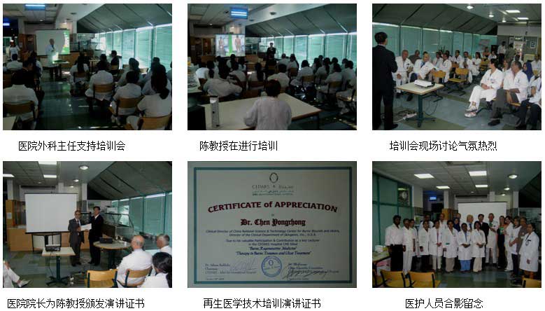 此次烧伤再生医学技术的临床应用培训班在阿联酋的烧伤创伤界产生了很大的影响,本来还有别的城市的几家医院要邀请陈教授到他们的医院进行再生医学培训和演讲的,但是由于陈教授的日程安排很紧,马上还要赶到其它国家演讲培训,所以其它城市的培训工作只能安排在下一次了。我们相信,只要我们坚持不懈地为各个国家的医院和医护人员提供再生医学技术支持、临床指导和培训,在不久的将来,会有更多的阿联酋的医师、护士更好地掌握和应用烧伤再生医学技术,更多的患者将会得到最好的再生医学技术治疗,并获得最理想的治疗效果。