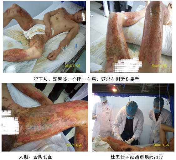 2010年11月25日,中国中西医结合学会烧伤专业委员会常委、北京美宝烧伤创疡研究所临床部主任杜福勤应宁国市人民医院烧伤科主任詹善余的邀请,杜主任于11月26日~30日为一名因车祸致皮肤坏死的患者和一名烧伤患者会诊,并与该院科室的医生进行技术交流。杜主任利用多媒体向大家介绍了应用再生医疗技术救治的临床病例所取得的良好效果,讲解了原位再生复原医疗技术治疗在烧伤、创伤、溃疡创面处理的五大理论核心内容和烧伤治疗“二少一多”及创面处理“三不四及时”原则,通过亲自为患者示范换药,使詹善余主任及全科人员更深刻地掌握了再生医疗技术应用规范,参加学习的医生都表示,再生医疗技术所取得显著的疗效是他们有目共睹的,愿再生医疗技术之花在宁国市长久盛开,福祉烧伤创疡患者。