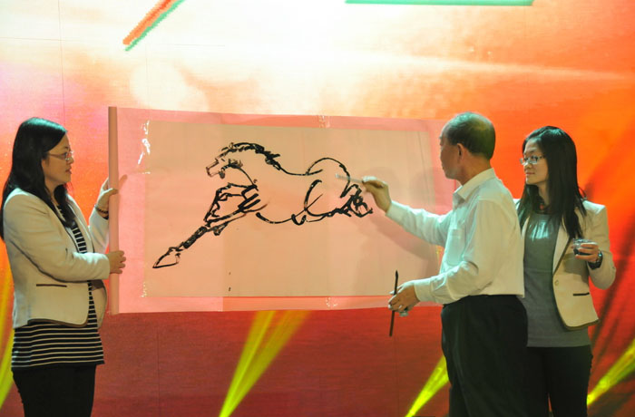 当晚,一年一度的晚会上演,展现美宝历史与成绩的“光辉岁月”的荧棒舞、体现企业“马上成功”的现场绘马表演、牵动着美宝人的心的“美宝,世界因你而变”的墨舞、充满浓郁风情与朝气的歌舞,充分展现着美宝人的风采,彰显着美宝人的对企业的灵魂的领悟与热爱。