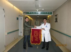 为感谢湘雅三医院烧伤科开拓创新,大胆采用人体再生复原技术根治肛瘘术后感染创面,患者周某特制锦旗两面分别送给贺全勇教授和郭梦茜医生。