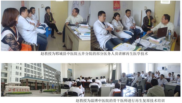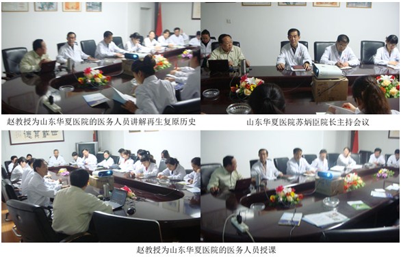 4月22日—4月27日应山东菏泽郓城县中医院五井分院、赵楼乡卫生院、黄堆集乡卫生院、济南华夏整形美容医院、淄博中医院、滨州邹平县中医院和齐鲁石化总院的邀请,北京烧伤创疡研究所副所长赵瑞庆教授在山东利用短暂的时间先后分别在以上医院进行再生复原技术培训。