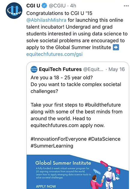 目前,克林顿全球倡议大学CGI U已官方发布这一项目的招募启事。