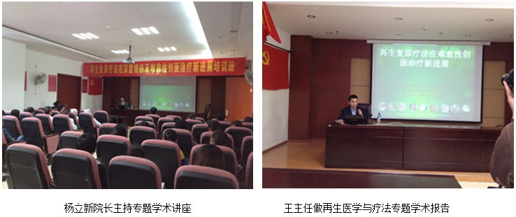 2012年11月16日下午应该院杨立新院长的邀请, 中国中西医结合学会烧伤专业委员会常委兼秘书、《中国烧伤创疡杂志》副总编辑、北京美宝烧伤创疡研究所副所长、临床研究部主任王洪生研究员来到该院,对该院医护人员进行再生复原疗法在深度烧伤及难愈性创面和各种溃疡治疗新进展的规范性培训及学术交流。王主任结合大量真实的临床病例图片,就再生复原疗法在难愈性创疡创面治疗上的一种新方法,对不同深度的烧伤创面及各类难愈性创伤、溃疡创面的规范化处理方法与技巧、注意事项等进行了细致的讲解,强调创面处理要大胆清创、减压、去除坏死组织,并保持创面生理的湿润环境,实现创面的再生复原。会后外科的医生就高压电烧伤颅骨开窗等系列问题请教了王主任,并一一作答。