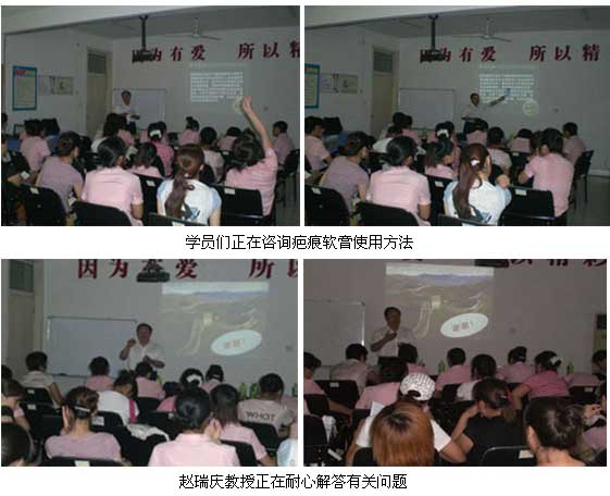 赵瑞庆教授在2个小时的培训中介绍了北京烧伤创疡研究所20年的发展历程,以图文并茂的形式重点讲解了美宝疤痕软膏的药理作用。临床适应症,用通俗易懂的方式讲解如何区分新鲜瘢痕与陈旧性瘢痕,如何掌握治疗两者瘢痕的技术要点,如何规范应用疤痕软膏的奥秘。