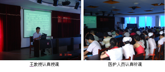 培训班于当天下午14:30正式开始,该院杨院长全程主持了会议。在培训会上,王教授利用大量的临床图片资料和影像资料深入浅出地向大家介绍了再生复原疗法在难愈性创疡创面治疗的新进展;不同深度、不同原因烧伤创面的临床规范化处理;大面积烧伤的全身综合治疗及护理,针对不同程度的烧伤创面、溃疡创面进行了详细地讲解。通过王教授生动地讲授,到会的医护人员都对再生医疗技术所取得的治疗效果感到惊叹,此次学术培训会对该市以后开展再生医疗技术打下了基础,起到了较好地推广作用。
