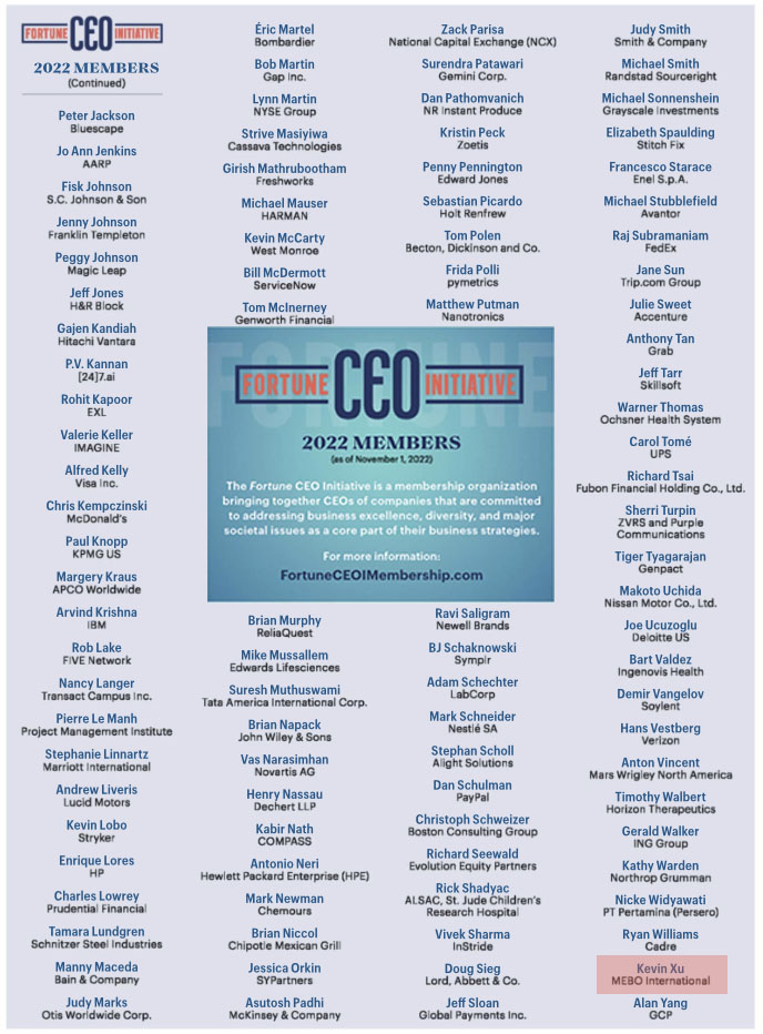 此次位列财富CEO倡议2022年名单还包括米其林、梅西百货、塔塔、联邦快递、罗素、辉瑞、强生、诺华等500强企业CEO。