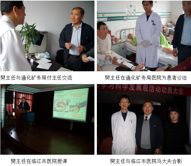 2009年3月20日-3月22日,应吉林省白山市中心医院,白山通化矿务局总院,临江市中心医院的邀请,中国中西医学会烧伤委员会常委,中国烧伤创疡杂志社常务编委樊兆宗主任来到了美丽的长白山脚下—吉林省白山市,分别对这3家医院的普外科,骨外科,脑外科,急诊科,小儿外科,手外科,消化内科,放射科,五官科,妇科等学科的 200多人,进行了再生医疗技术多科室应用的学术培训,培训会中学员们认真听课,记录笔记。樊主任深入浅出的讲解,赢得了与会人员阵阵掌声,使学员们受益匪浅。