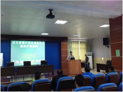 2012年8月21日,应富宁县人民医院的邀请,中国中西医结合学会烧伤专业委员会常委兼秘书、《中国烧伤创疡杂志》副总编辑、北京美宝烧伤创疡研究所副所长、第二临床研究部主任王洪生研究员来到该院,进行再生医疗技术讲座并进行学术和技术上的交流和探讨。该院领导对此次难得的学术活动机会相当重视, 医院多科室医护人员参加了此次会议。会中王主任就“再生复原疗法在深度烧伤及难愈性创面治疗新进展”作专题学术讲座,王主任结合大量真实的临床病例图片和图像,把再生复原疗法在深度烧伤及难愈性创疡创面治疗上的一种新方法,对不同深度的烧伤创面及各类难愈创伤、溃疡创面的规范化处理方法与技巧、注意事项等进行了细致地讲解。