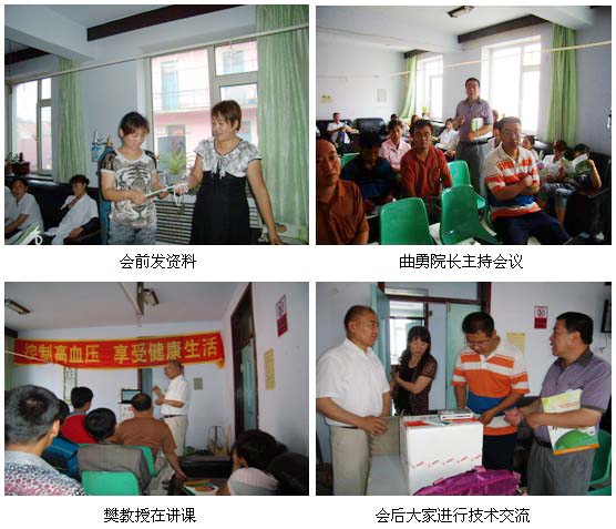 2011年7月9日,为了认真地贯彻好卫生部提出的将再生医疗技术向基层医疗单位推广的精神,中国中西医结合学会烧伤专业委员会樊兆宗教授在地区负责人乔巍的陪同下,来到了梅河口市牛心顶镇卫生院,这次的培训得到了院长曲勇的重视,他把辖区内的村级卫生所基层医疗工作人员20多人都召集到医院参加学习。由于医院的条件有限,无会议室,无投影等。曲院长临时腾出输液室供大家学习,没有投影仪樊教授就用自己的电脑站着为大家讲课。即便是在这样艰苦的条件下也没有减轻大家学习地热情。樊老师并结合了大量的临床图片从烧伤临床规范用药,到再生医疗技术多学科的临床应用,以及难愈合创面的处理方法进行了详细地介绍。与会人员表示,樊教授丰富的临床经验将原位再生复原医疗技术的原理讲解的十分透彻,大家一致表示通过这次培训提高了该院的烧伤、创疡、以及难愈合创面的处理水平。在培训结束后,曲院长和外科的医生与樊教授进行了进一步的交流,并在第一时间应用再生复原医疗技术系列产品美宝创疡贴为溃疡患者进行治疗。