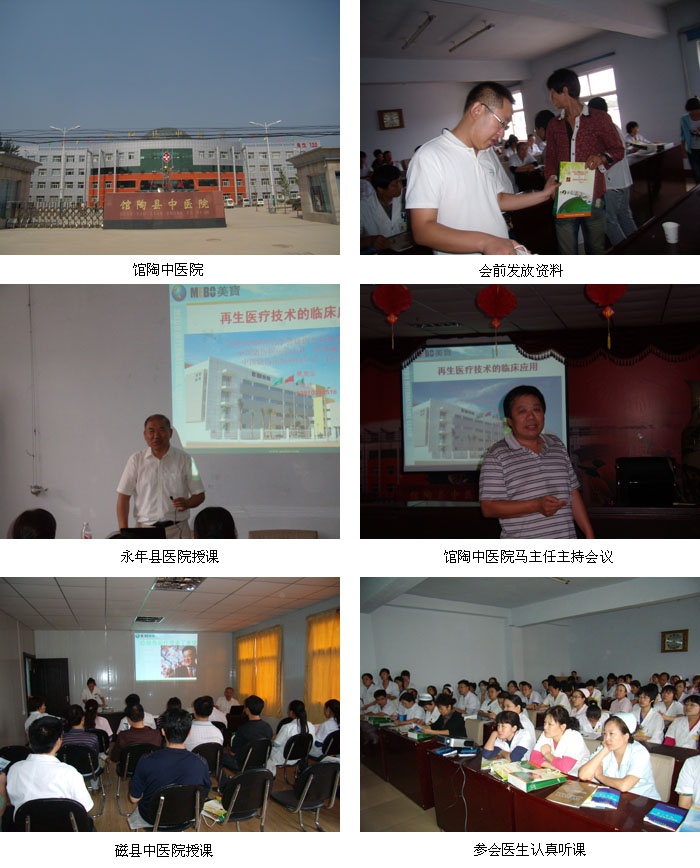 邯郸地处河北省南部,与晋、鲁、豫三省接壤,地理优势明显,交通便利,不仅历史悠久、文化渊远,而且资源矿藏丰富、经济基础雄厚,被誉为现代“钢都”、“煤都”。辖区内的邯钢、天铁集团是国家重点钢铁企业,另外峰峰、武安拥有多家煤矿、铁矿及钢铁企业,是名符其实的重工业城市。做为拥有几百万人口的工业城市,邯郸地区一直是烧伤创疡的多发地,各级基层医院多年来应用再生医疗技术不仅治疗了无数烧伤患者,而且解决了临床一些其他的疑难问题。为了让广大的基层医生更深入地了解再生医疗技术,规范治疗,进一步推广再生医疗技术在各基层医院全科室的应用,2010年8月8日至10日,中国中西医结合学会烧伤专业委员会常委、中国烧伤创疡科技中心主任樊兆宗教授应磁县中医院、永年县医院、馆陶中医院的邀请,分别对以上医院进行了“再生医疗技术规范治疗烧伤创疡”的授课讲座。樊教授通过多媒体幻灯片向大家展示了大量的临床实例图片,讲解了如何应用再生医疗技术规范处理各种烧伤、创伤创面以及难愈性创伤、溃疡创面,会后各科医生也和樊教授进行了积极的讨论和交流。