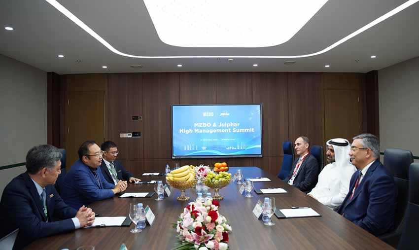 13日上午,Julphar一行三人如约来到美宝集团上海公司,秉承加深战略合作,共建崭新未来的友好基调,双方共同回顾了近年来合作历史,就高层互信、合作升级、多元业务拓展等方面进行了深入的会谈。徐鹏主席对来访的Julphar高层三人表示了热烈欢迎,回顾了2019年7月与Sheikh Saqr在哈伊马角皇宫的初次会晤,热情介绍了近年来美宝集团在海外事务中的各项进展,着重介绍了2023美宝APEC年取得的多项成果,徐鹏希望借力APEC契机,美宝与Julphar未来能够进一步拓展合作模式,在文娱、体育、公共项目等领域共搏未来,为建设美好世界发力。