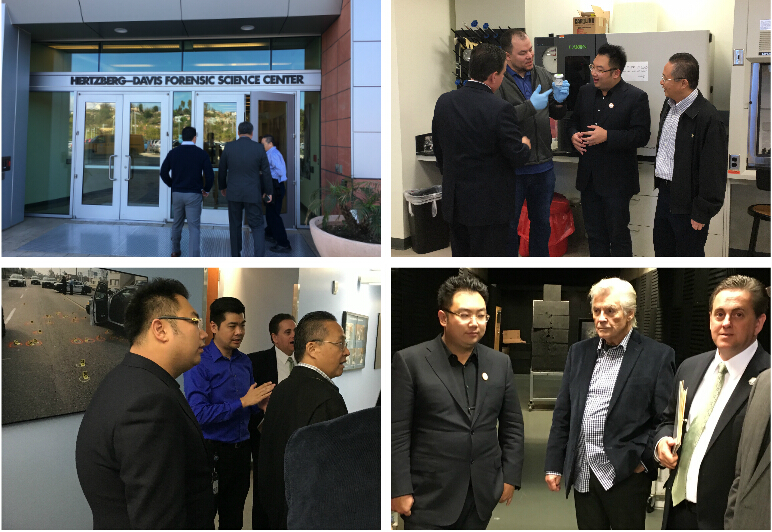 午餐后,戈麦斯校长亲自驾驶校园电瓶车带徐鹏总裁和来宾来到美国除联邦调查局以外最大的法医学中心-由洛杉矶郡警和市警合作的赫兹伯格-戴维斯法医学中心参观。该中心的毒理实验室主任和器械主管警官全程引领和讲解,该中心是美剧CSI(犯罪现场调查)鉴证的技术支持。