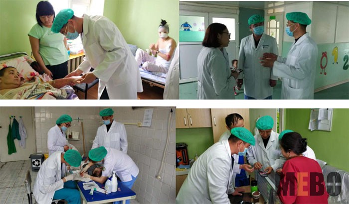 培训结束之后,陈永翀主任受邀前往门诊换药处对近期因森林火灾烧伤的消防员的清创和包扎进行指导。最后,创伤科主任再次向美宝国际的人道主义精神表示钦佩,并向一如既往支持再生医学在蒙古国落地生根的中蒙专家们表达了感谢,并呼吁共同为后续再生医学培训班的开展尽最大的努力。
