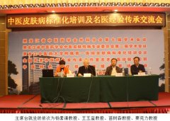 在金风送爽,稻麦飘香的收获季节里,2013年10月18日黑龙江中医药大学附属第一医院皮肤病标准化培训会议”暨“黑龙江省中医药学会外科分会第七届学术会议、黑龙江省中医药学会皮肤性病专业委员会第二届学术会议、王玉玺及李令根全国名老中医药专家传承工作室名老中医经验学习班及中医特色诊疗技术继续教育培训班”成功召开。会议由黑龙江省中医药学会皮肤性病专业委员会主任委员杨素清教授主持。黑龙江省卫生厅副厅长黑龙江省中医药管理局局长 王学军;黑龙江中医药大学附属第一医院中医标准化工作项目负责人 秦克力教授河北中医学院的成秀梅教授、中国中西医结合学会烧伤专业委员会主任委员肖摩教授、华医过敏医院院长费秀天教授、黑龙江省医院皮肤科主任柳曦光教授,以及全省各家医院的参会代表委员出席会议。黑龙江省中医药学会皮肤性病专业委员会名誉主任委员王玉玺教授致开幕词,他对长期以来一直关心、支持中医外科、皮肤科事业发展的各级领导表示最诚挚的谢意。