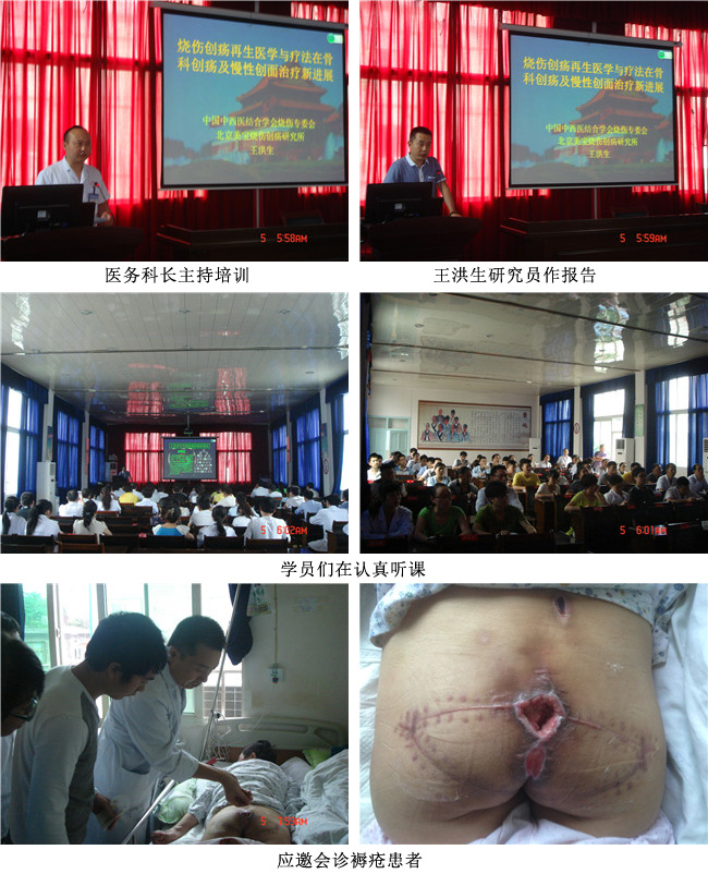 2014年6月13日下午3:00,应贵州省绥阳县中医院邀请,中国中西医结合学会烧伤专业委员会常委兼秘书、《中国烧伤创疡杂志》副总编辑、北京烧伤创疡研究所副所长、第二临床研究部主任王洪生研究员在绥阳县中医院作《烧伤创疡再生医学与疗法在骨科创疡及慢性创面治疗新进展》技术培训,来自该院各个临床科室的60多名医护人员参加了此次培训。在培训中,王主任首先向大家通报了我国著名生命科学家、医学家徐荣祥教授近期在人体再生复原科学领域所取得的重大临床及实验研究成果,以及再生生命科学体系的核心科学理论就是潜能再生细胞、唤醒和培养潜能再生细胞的再生物质,以及体外和原位培养再生细胞再生器官的技术这三大要素。然后结合大量真实的临床病例图片,向与会医护人员重点介绍了人体再生复原科学唤醒和培养创面潜能再生细胞的核心技术--烧伤创疡再生医学与疗法是如何采取再生营养的方法利用再生营养物质在创面原位培养潜能再生细胞实现各种深度创面原位再生复原的,并对骨科创疡及糖尿病足、动脉闭塞症、压疮、等多种慢性难愈性创伤、溃疡创面的规范化处理方法与技巧、注意事项等进行了讲述,并强调创面处理要大胆清创、减压、去除坏死组织,并保持创面生理的湿润环境,实现创面的原位再生复原,为医护人员在难愈性创面处理上提供了一种新的治疗思路、新的方法。与会医护人员都认真听讲,对王主任的授课表示感谢,此次讲座使他们学到了前沿的创面处理的思路及方法,更加深入地了解了烧伤创疡再生医学与疗法,为解决临床中遇到的慢性创面提供了有效的治疗方法,此次技术培训持续到下午5点30分才结束,讲座结束后,王主任还应邀到该医院骨科病区为1例长期不愈的四期压疮患者进行了会诊和临床指导。