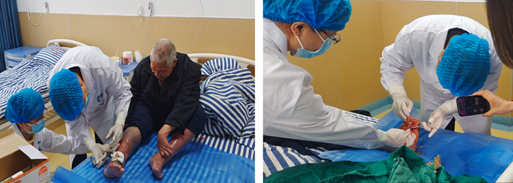 尽管麻风病早已可防可治,但麻风分枝杆菌造成的周围神经损伤,却让患者面临难愈合创面的长期折磨。足跖麻木导致的无保护行走、旧瘢痕反复破溃、感染灶持续存在,让溃疡成为复发率极高的“顽疾”。据调研显示,2020年海南13个麻风院村的溃疡发病率达18.9%,曾有22名患者因创面恶化又缺少有效的治疗方法而面临截肢风险,而截肢意味着彻底丧失劳动能力与生活尊严。对一些偏远地区的患者而言,困境更甚。行动不便、经济拮据让他们难以获得规范治疗,乡镇卫生院往往束手无策,只能给出“截肢”的无奈建议。一位要靠双脚照顾家人的患者曾恳切求助:“我这腿不能截,老妈和女儿还等着我”,道出了万千患者的心声。