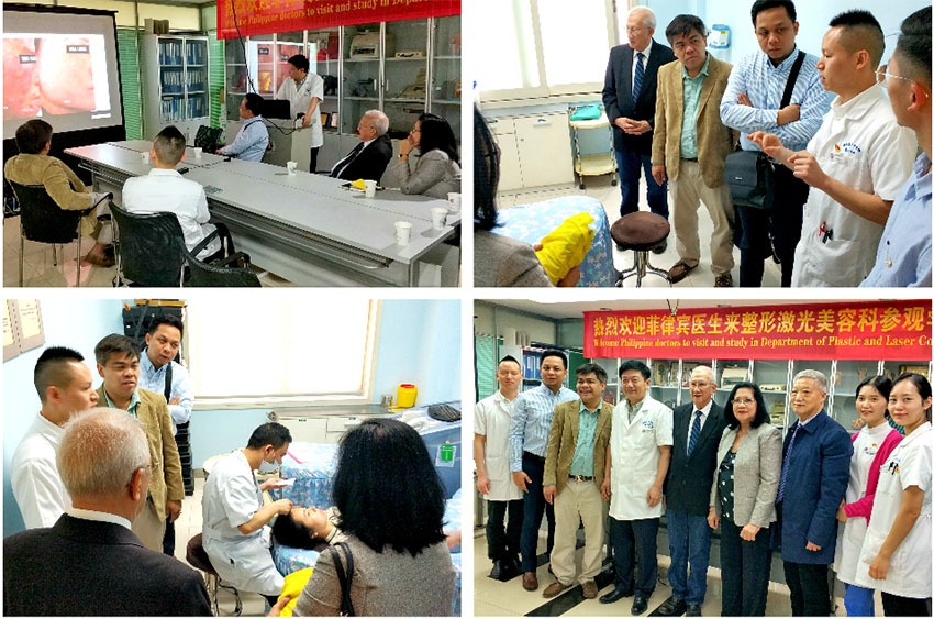 在湖南省人民医院激光整形科,几位医生听取了谭军教授关于激光整形方面的经验分享并与谭军教授就再生医疗技术应用于激光整形术后创面修复管理方面的问题进行了讨论,Dr. Oppus Glenn Eduard, Dr. Mapayo Enriquez Arnulfo 提出了其在激光整形方面的问题,谭军教授结合病例进行了悉心讲解与经验分享,并参观了整形激光美容科的病房,几位医生为再生医学技术结合整形激光美容在创面修复治疗与管理方面赞叹不已。