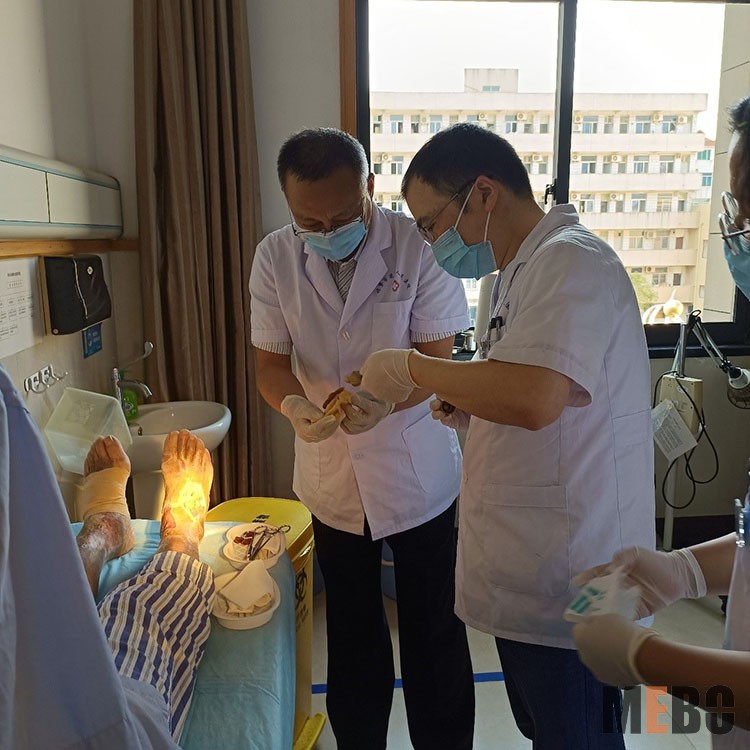 2021年6月28日,中国中西医结合学会烧伤专业委员会张强主任应邀前往宿州市煤电集团总医院,对烧伤科糖尿病足、下肢慢性溃疡等患者进行手术清创,并为科室人员示范再生医疗技术临床规范换药,并进行了深入交流,得到医护人员和患者的高度赞赏。