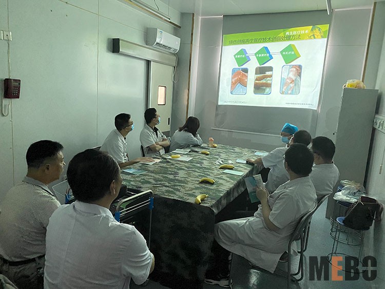 2021年5月28日,中国中西医结合学会烧伤专业委员会医疗部专家张强主任,受邀来到武警湖北省总医院普外科,开展了“再生医疗技术在肛肠疾病治疗中的创新应用”的专题讲座。课上张主任同医师们讲解了再生医疗技术的作用原理与规范处理原则,分享了再生医疗技术在肛肠疾病相关性创疡和切口感染等难愈性创面治疗成功的经验,并同王主任就技术细节和科室建设作了交流!接下来,张主任受邀继续到武昌医院内分泌科会诊了一例基础病较多严重的压疮患者,张主任实操讲解与示范创面黑痂及浓性分泌物如何清创、制作油纱、规范换药包扎疗法。在张主任指导下,护理老师们学到了很多换药技巧。会诊后张主任同黎主任及护理老师深入交流与详细讲解运用再生医疗技术在临床中差异化换药问题,让大家对技术有了新的认知!