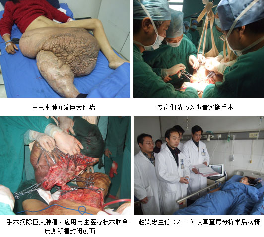 2009年3月1日,一名患淋巴水肿并发巨大肿瘤的患者在南通市第三人民医院暨中国烧伤创疡科技中心南通整形烧伤中心成功接受中西医结合皮肤再生疗法实施肿瘤切除手术。肿瘤重达50多公斤(患者称重为99.5 公斤),据检索,目前国内外尚无成功切除淋巴水肿并发如此巨大肿瘤的报道。