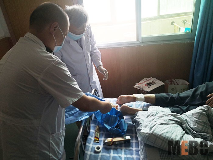 6月2日,安徽滁州市皖东人民医院开展糖尿病足患者会诊,北京荣祥再生医学研究所副所长、《中国烧伤创疡杂志》编委金党军现场指导医生换药,并指导李主任处理创面和注意事项及后期治疗方案。