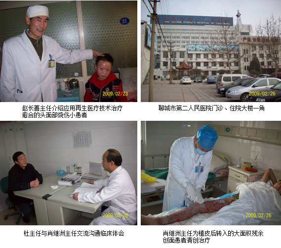 2009年2月中国中西医结合学会烧伤专业委员会常委、临床部主任杜福勤继走访烟台、淄博区域后;中旬又在德州地区多次会诊烧伤创疡患者,积极协助学会山东办事处开发速愈贴市场;下旬在负责菏泽、聊城、德州区域的技术推广刘玉芳同志陪同下,先后走访德州市第二人民医院、德州市妇幼保健院、庆云县人民医院、陵县陵城镇人民医院、聊城市第二人民医院(三甲)、聊城市中医院(三甲)、菏泽市创伤医院(市第二人民医院)、菏泽市中医院(三甲),并与赵长善主任、刘忠利主任、孙九峰主任(院长助理)、肖继洲主任、李俊峰主任、菏泽市创伤医院医务科邵兵科长、市中医院医务科(内科主任)郭刚科长座谈交流,他们对再生医疗技术的临床治疗效果予以充分肯定与认可,对再生医疗技术的发展前景充满信心,期待着在临床造福更多的烧伤、创疡患者。