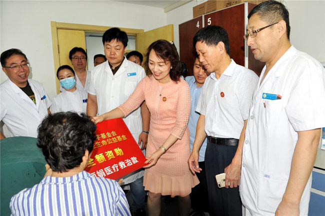 8月8日,中国红十字基金会徐荣祥再生生命公益基金工作人员将“全额资助医疗救治款”,送到正在北京宣武中医院进行治疗的残疾贫困烫伤患者高某手中。