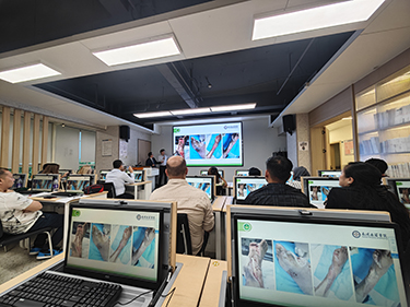 次日上午,代表团前往创面修复科观摩再生医疗技术及多技术联合应用治疗慢性创面的换药过程。代表团首先观摩了创面专科护士为背部IV期压疮患者进行负压封闭引流的换药操作,并加深了对应用护理技巧预防医源性压疮的理解。随后,代表团协助创面专科护士为下肢血管性溃疡等慢性创面患者进行换药,通过创面专科护士对操作技巧的强调及讲解,代表团更加深入的了解了如何根据患者创面情况选取合适的换药方式。下午,代表团来到了瘢痕修复科,通过现场学习及操作充分了解到了超声波技术及推拿技术在预防瘢痕产生时的作用机制。