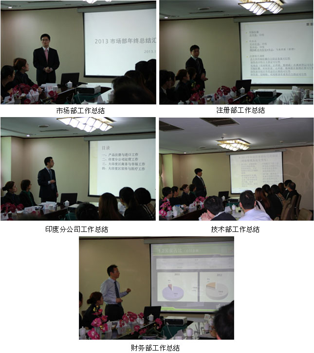 上午的会议主题为2013年总结,国际市场集团各部门负责人由吴云、张印、陈刚、舒叶、肖舸、乐盛华、刘林、张京艳分别就各自所辖部门2013年的工作总结进行了详细地汇报,总结了2013年取得剖析工作中存在的不足,提出了基本的工作改进思路。随后,孙总就各部门的工作总结分别针对性地进行了精准地点评,一方面肯定了国际市场集团在面临2013国际市场遇到的多项客观阻力的前提下所取得的成绩,特别是在整体销售回款目标任务完成;另一方面针对各部门工作存在的不足,包括各市场终端活动掌握的匮乏,分公司工作进度缓慢及经营模式无突破等方面,一阵见血地提出了批评并分别做出了明确的改进要求。
