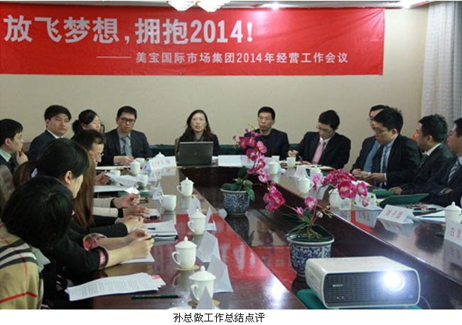 银蛇喜送峥嵘岁,骏马欢迎锦绣春!2013年1月10日,美宝国际集团2014年工作经营会议胜利召开,集团全体员工再次欢聚一堂,共庆盛会。美宝国际市场集团全体员工在集团总裁孙霞及领导班子带领下认真总结、深入剖析了2013年的各项工作并制定了2014年各项工作规划,详细报道如下: