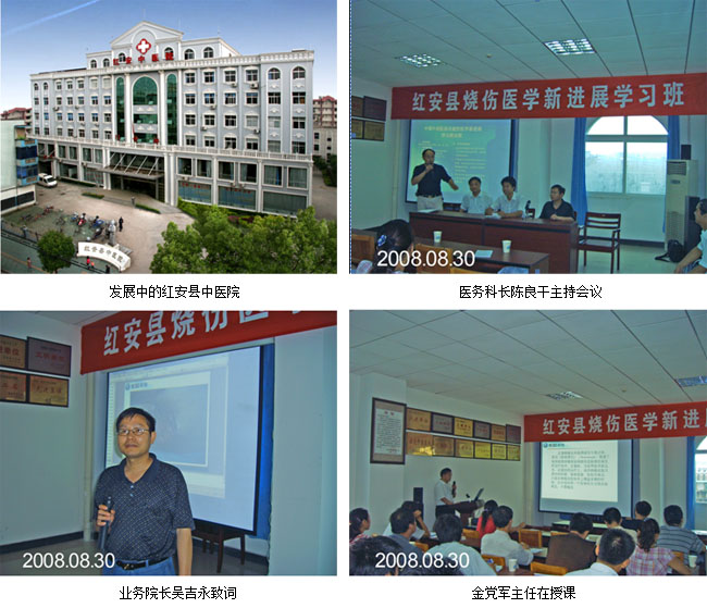 2008年8月30日 有中国中西医结合学会烧伤专业委员会主办,红安县卫生局、红安县中医院承办“再生医疗技术新进展学习班”在中医院学术厅拉开帷幕。红安县地处鄂、豫、皖三省交界。是革命老区,著名的将军县,这次学术活动得到县卫生局李汝才局长、医政股长袁波、中医院院长李长乐、等领导的大力支持。并对烧伤皮肤原位再生医疗技术在多学科的应用前景,和专家无偿地对基层医生进行技术指导培训,给与高度地评价。29—30日虽然连续两天持续强降暴雨但仍有40几个单位,120多名基层医生冒雨前来学习。会议有医务科长陈良干主持、业务院长吴吉永致词。