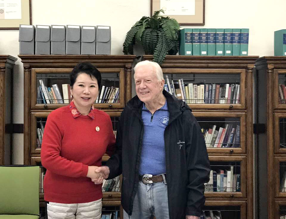 在中美关系友好和平发展的进程中,美国前总统卡特是个关键人物。1972年美国总统尼克松访华,开始中美关系正常化进程,由于种种原因,任内一直没有正式与中国建交。1978年4月,时任美国总统吉米•卡特公开宣布:美国承认一个中国的概念,同中国建立正式的外交关系符合美国的最大利益。12月16日,中美两国政府同时在北京和华盛顿公布《中华人民共和国和美利坚合众国关于建立外交关系的联合公报》(简称《中美建交公报》),宣布中美两国自1979年1月1日起建立外交关系。1979年1月28日至2月5日,卡特总统克服重重困难与邓小平主席签订了《中美建交联合公报》,共同开辟了中美关系的新时代,他们的这一伟大决定改变了中国千千万万人民的生活,也改变了世界的格局。