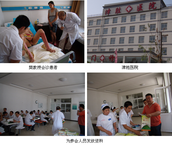 2010年8月2日,中国中西医结合学会烧伤专业委员会常委、北京烧伤创疡研究所副所长、临床研究部主任樊兆宗教授应津胜医院领导的邀请,到该医院进行 “再生医疗技术在烧伤创疡及多科室的应用”专题临床学术讲座。樊主任结合了大量的临床病例图片,从烧伤的诊断到各类难愈性创伤、溃疡创面的规范化处理方法与技巧、注意事项等向与会的人员进行了细致地讲解,博得了与会人员的一致好评。会后,该院陈院长和烧伤科王少康主任陪同樊教授对在该科室治疗的严重烧伤患者进行了临床技术指导。陈院长表示希望樊教授以后能够经常来医院进行技术指导,加强技术交流,共同造福广大患者。