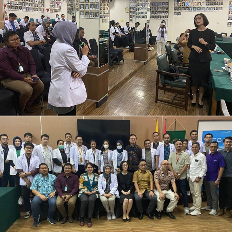 7月24日至25日,美宝国际的学术足迹延伸至西爪哇省首府万隆市,在当地最大的教学医院Hasan Sadikin与60余名医疗专业人士进行了学术交流与分享。徐巍巍主任围绕慢性创面护理与治疗,深入剖析了再生医疗技术的作用机制、适应症范围及学术研究成果,为参会者提供了生动的讲解及答疑。交流之余,医院科室负责人Dr Almahita Cintami Putri的引领参观,更是让美宝国际团队对印尼医疗体系有了更为直观和深入的了解。