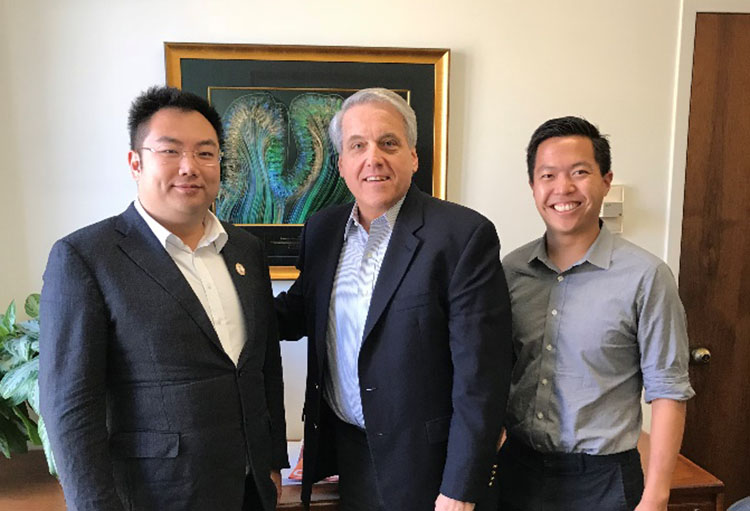 2018年9月18日,美宝集团董事局主席徐鹏应邀正式访问加州理工学院,陪同访问的有加州理工学院校友会董事Anthony Chong博士。为了让徐总对加州理工有个全面深入的了解,校方为徐总的到访做了精心准备,上午下午共安排8场会议,分别与副校长教务长David Tirrell、副校长Brian Lee、副校长Valerie Otten以及生物和生物工程学系、化学和化工学系、工程和应用科学系、人文和社会科学系的系主任们以及有关专家进行了深度交流,双方都对对方有了比较清楚的了解并初步探讨了在科研、教育、国际交流与拓展、学生创新创业等方面的合作意向。徐总对加州理工将于2020年落成的专门的神经科学研究所、生物和生物工程学系的大脑-机器接口(大脑意识控制机器手)以及化学和化工学系夏皮罗教授独特的单细胞超声技术非常感兴趣,表示后续将更加关注加州理工这几方面的研究和合作机会。这次一整天的访问节奏紧凑,富有成效,为下一步双方的合作打下了坚实的基础。