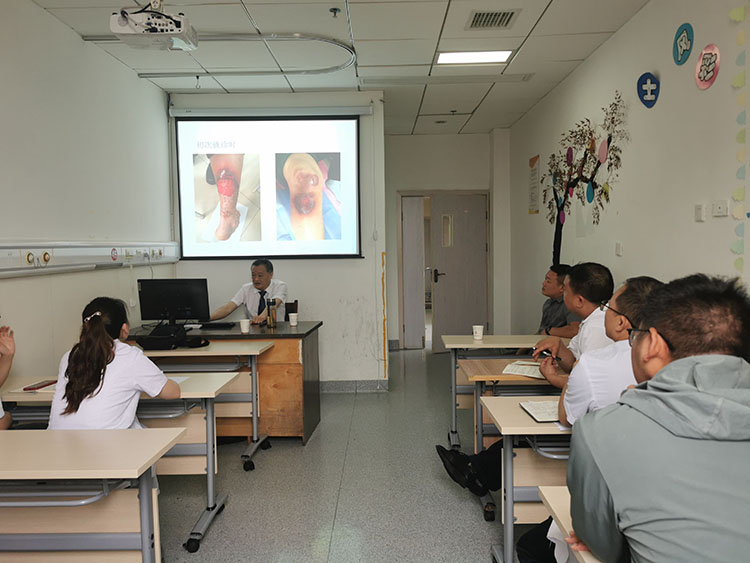 6月19日,应河北北方学院附属第二医院邀请,《中国烧伤创疡杂志》常务编委、烧伤创疡再生医疗技术临床专家赵瑞庆,在该院会诊了四例糖尿病足溃疡患者,会诊后在医办室做了会诊小结,分别给出指导意见,事后又进行了再生技术治疗糖尿病足溃疡的科室培训,耐心解答了大家提出的临床问题,受到大家一致认可。