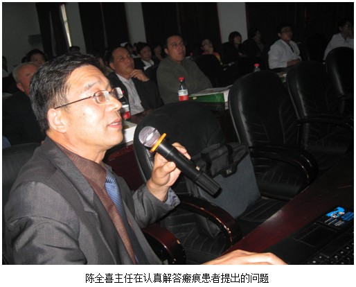 2011年10月23日上午9点,北京美宝烧伤创疡研究所临床部医疗专家、河南省中西医结合学会烧伤专业委员会秘书长、河南省医师协会烧伤科分会秘书长陈全喜主任受开封乐仁堂医药连锁药店李国臣经理的邀请,为因外伤、烧伤后的瘢痕患者进行“皮肤原位再生复原医疗技术治疗瘢痕”的学术讲座。