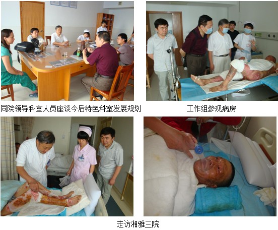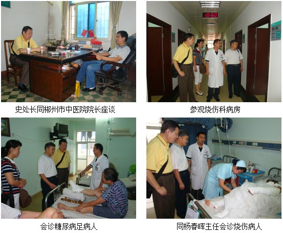 今年三月至六月中下旬,中国中西医结合学会烧伤专业委员会湖南省办事处组织有关专家和领导对本区域内部分医疗分中心进行了两次集中维护走访活动,特别是六月中下旬这次活动是在日常维护走访的基础上进行的一次高规格的检查指导,对各分中心的业务工作起到了促进作用。由中国中西医结合学会烧伤专业委员会常委金党军主任、湖南办事处主任汪波、湖南省中西医结合学会顾问史庭坚、烧伤专业委员会秘书侯效东及部分办事处工作人员组成。分别走访了湘雅三医院、宁乡县人民医院、浏阳市中医院、郴州市中医院、湘南学院附属医院、郴州市卫生局等单位,对部分在开发中的医院进行了院内培训。通过这次走访,对医疗技术推广中发现的问题进行及时修正,对技术应用好的单位进行表扬,对工作开展缓慢的单位进行督促鼓励,并帮助一些有困难的单位进行协调,解决困难。如对浏阳市中医院烧伤科在收治创疡病患方面通过和院领导的协调,扩大了烧伤科的救治范围,真正起到烧伤创疡分中心的作用。