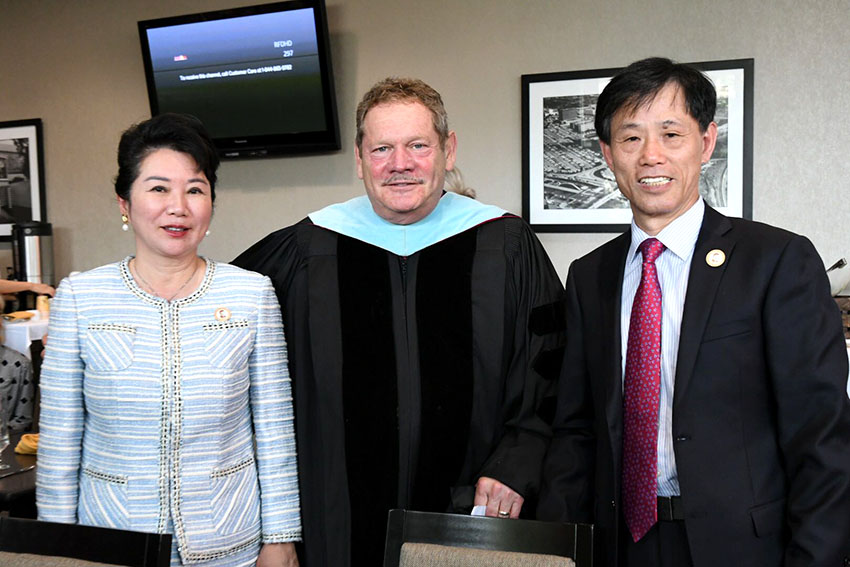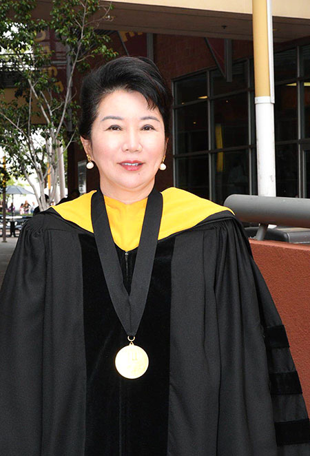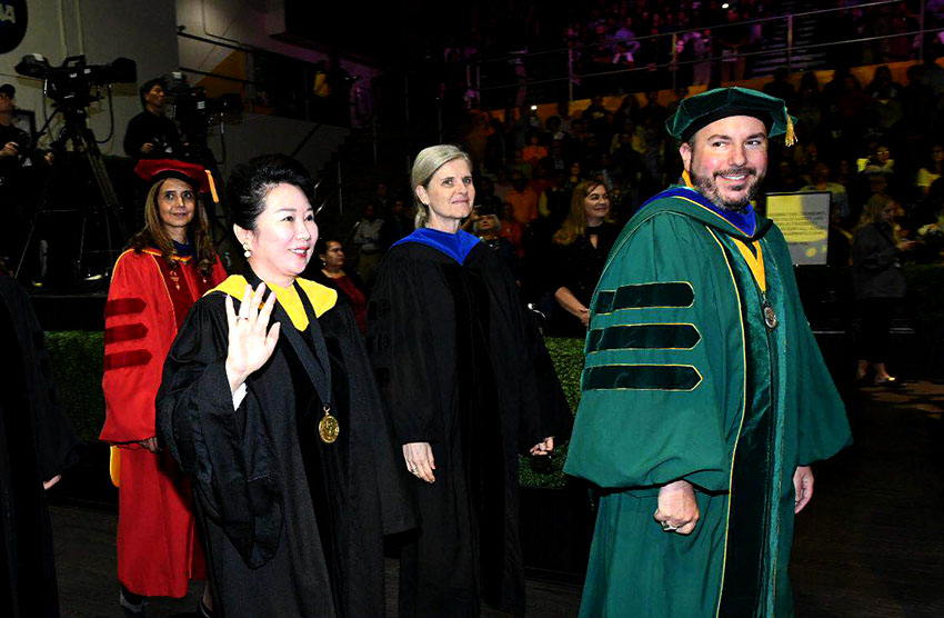 在为期五天的加州州立大学洛杉矶分校毕节盛典中,徐荣祥健康与公众服务大学毕业典礼尤为瞩目。这座建校70年来,第一次以人名冠名的学院的毕业典礼中不仅有洛杉矶州大校长William Covino、常务副校长Jose Gomez、副校长Dr. Janet Dial 、徐荣祥健康与公共事业服务学院院长Dr. Ronald Vogel出席;更有来自中国的著名艺术家到场祝贺。美宝集团员工代表参加了当日下午徐荣祥大学护理学院和营养学院的毕业典礼,共同见证这一神圣时刻。